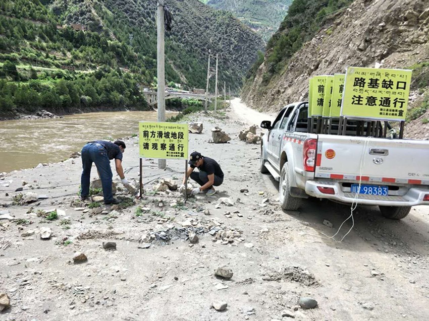 此次排查工作在原有的基礎(chǔ)上,增設(shè)安全隱患警示標(biāo)識(shí)標(biāo)牌近46處,并用油漆在道路沿線涂寫安全隱患標(biāo)志200余處。動(dòng)用裝載機(jī)10次臺(tái)班,共組織人員50人次。清理邊坡垮塌140余處近21000立方米,清除路邊亂堆亂放的砂石、木材等40處,機(jī)械填補(bǔ)路面近900余處,保障公路有效路面同時(shí),抓好后續(xù)的巡查、防范工作。同時(shí),加大公路路況巡查力度,對(duì)易發(fā)生災(zāi)害的路段全面開展安全隱患排查,安排專人重點(diǎn)監(jiān)控公路沿河路段、高邊坡危巖路段及路基沉降路段,并設(shè)立警示標(biāo)志等提醒過往車輛及行人注意安全通行。