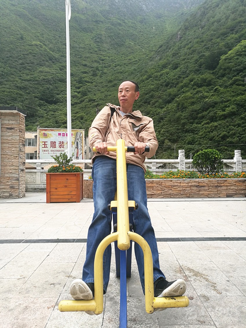 今年57歲的多吉,來自德格,前段時間做完體檢后,就一直住在康定。在這期間,他每天早上都會散步半小時到健身器材處鍛煉,當記者問他對是否對全民健身有了解時,他說:“全民健身就是要大家都運動起來,所有人都能擁有一個好身體。現(xiàn)在很多人上班工作忙,下班應酬、上網(wǎng)忙,嚴重缺乏鍛煉;像我一樣上了年齡的就更要鍛煉,這不僅是對自己的身體負責,更是對兒女負責?!睋?jù)了解,多吉在老家德格,還有一個鍛煉基地——印經(jīng)院,每天在那里轉經(jīng)不僅讓他的身體得到鍛煉,更讓他的心靈得到沉淀。