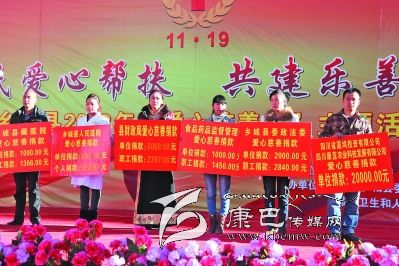本網(wǎng)訊(何才華 文/圖)11月18日,鄉(xiāng)城縣愛(ài)心慈善募捐活動(dòng)在該縣香巴拉休閑廣場(chǎng)舉行,來(lái)自全縣的機(jī)關(guān)干部、宗教界代表、個(gè)體工商戶代表、建筑施工企業(yè)等各界人士近2000人為需要救助者獻(xiàn)出自己的一份愛(ài)心。活動(dòng)現(xiàn)場(chǎng)募捐資金532998元。