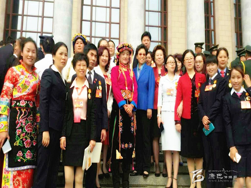 桂花與部分全國(guó)勞模在人民大會(huì)堂前合影。