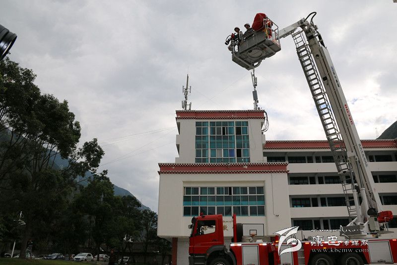 為使參訓學生更好地將此次學習到的消防知識融于實踐,消防部門還在校園操場,組織參訓學生開展了油盆火災撲救,現場學生紛紛踴躍報名,現場氣氛十分活躍。在消防官兵的指導下,學生們分為三組,利用手提式干粉滅火器進行了油盆火災撲救演練,提瓶、拔銷、對根、壓柄一氣呵成,火勢被順利撲滅。隨后,消防官兵又向學生們演示了單干線出兩支水槍滅火操,并介紹了甘孜州最尖端的消防車輛器材及裝備,組織參訓新生進行了一場32米登高平臺車高空作業(yè)體驗。按照操作規(guī)程,消防官兵協(xié)助參加體驗的學生戴好防護頭盔,扎上綁有安全繩的防護腰帶,順利登上了登高平臺。在消防官兵嫻熟的操作技術下,登高平臺勻速上升到20米高空,現場傳來了一陣陣驚嘆聲。