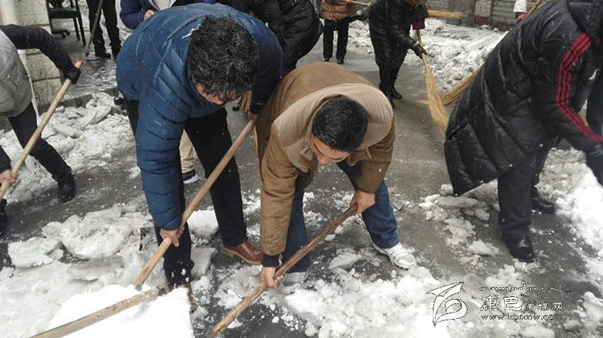 從22日上午起,記者在康定城區(qū)大街小巷看到,駐州部隊官兵以及部分單位職工緊急行動起來,清掃積雪。根據(jù)州委、州政府的安排,州直屬機(jī)關(guān)工委也于22日向州級部門、省屬單位各基層黨組織發(fā)出緊急通知,并逐一劃分責(zé)任片區(qū),組織干部職工集中清理辦公區(qū)、住宿區(qū)、街道積雪,確保道路安全暢通。 按照劃分的責(zé)任片區(qū),州級機(jī)關(guān)行動迅速,到處可以看見干部職工揮動鐵鏟除雪的忙碌身影。23日上午10點(diǎn)過,記者看到從藏族小學(xué)到州委黨校的路段上,州委黨校和州檔案局的干部職工正在清除積雪。“大雪影響了這段路上居民的出行,積雪很深,給清掃帶來極大困難。州直機(jī)關(guān)工委號召機(jī)關(guān)單位干部職工積極行動起來清理積雪,這是與人方便,也是與自己方便。積雪清掃干凈后,走在路上不需要擔(dān)心被滑倒。”州委黨校教師扎西說。
