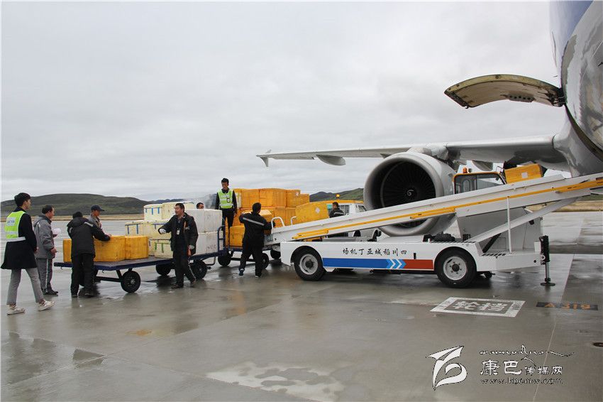 成箱的松茸被運上稻城亞丁機場當(dāng)天的航班。 康定機場集團公司供圖