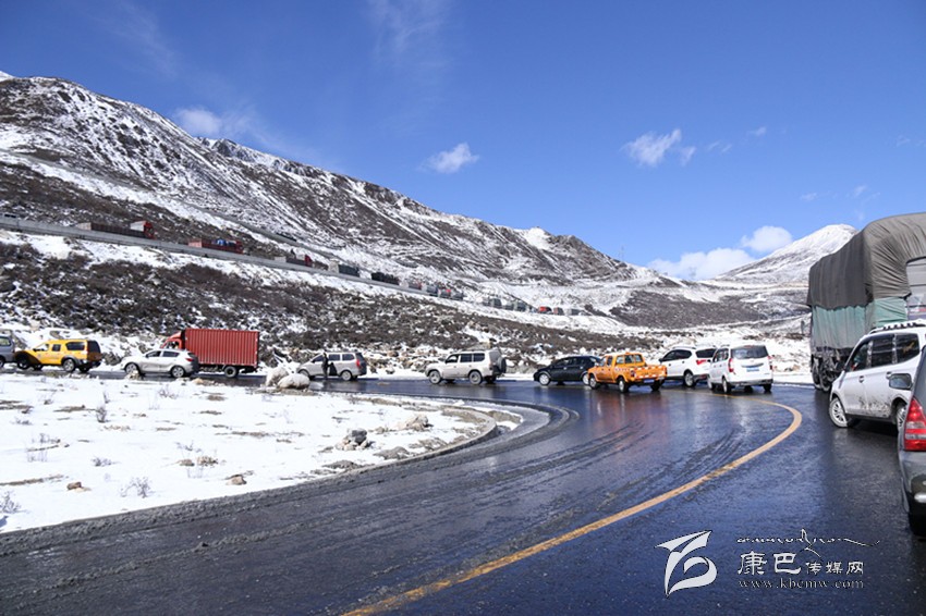 記者在前往山頂?shù)难赝究匆姴簧佘囕v正緩慢行駛,還有不少正??吭诼愤厭戽湕l。行至二臺(tái)子中橋附近時(shí),記者看見由于彎道集中、路面較滑,加之部分司機(jī)違規(guī)搶道,造成了數(shù)百米的擁堵。約半小時(shí)以后,車輛開始緩慢行進(jìn),在折多山山頂附近,記者看見幾名警察正在處理一起并沒有造成人員傷亡的兩車迎面碰撞事故。
