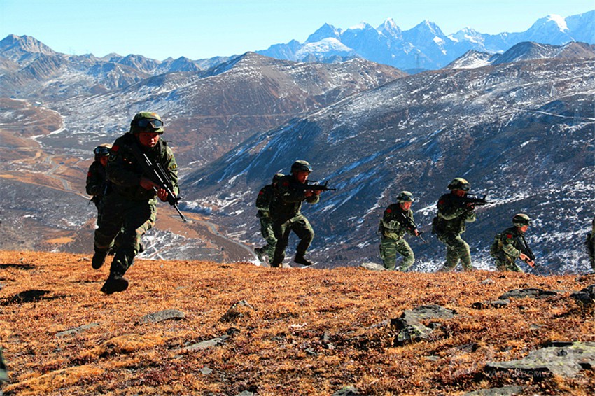 本網(wǎng)訊(王晶文 /圖)連日來,武警四川省總隊第二支隊的特戰(zhàn)隊員們在海拔4800多米的折多山上進行突破極限訓練。