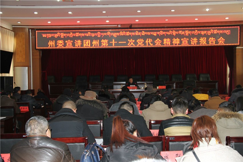 會(huì)上,黃虎彪以州委書記劉成鳴在州第十一次黨代會(huì)上的報(bào)告為主題,對(duì)州第十一次黨代會(huì)精神作了系統(tǒng)全面宣講。對(duì)會(huì)議的基本情況、主要成果、主要內(nèi)容、重要意義作了系統(tǒng)說明,并結(jié)合我州實(shí)際從過去五年我州發(fā)展的主要成果和基本經(jīng)驗(yàn)、當(dāng)前我州面臨的基本形勢(shì)、今后五年我州的工作思路和奮斗目標(biāo)、繼續(xù)堅(jiān)持全面從嚴(yán)治黨等方面對(duì)黨代會(huì)精神作了系統(tǒng)全面解讀。黃虎彪說:過去五年是我州發(fā)展進(jìn)程中綜合實(shí)力提升最快、基礎(chǔ)設(shè)施改善最大、民生改善最好、群眾得到實(shí)惠最多的五年;當(dāng)前面臨的形勢(shì)時(shí)隨著國家區(qū)域總體發(fā)展戰(zhàn)略的深入實(shí)施,新一輪西部大開發(fā)政策的全面落實(shí),特別是中央第六次西藏工作座談會(huì)出臺(tái)支持藏區(qū)經(jīng)濟(jì)社會(huì)發(fā)展和長(zhǎng)治久安的意見,為我州加快發(fā)展提供了強(qiáng)大的政策支持、項(xiàng)目支持和資金支持;今后五年的目標(biāo)是全面消除絕對(duì)貧困,18個(gè)縣(市)全部“摘帽”,1360個(gè)貧困村全部退出,19.74萬貧困人口全部脫貧,貧困人口發(fā)展能力不斷增強(qiáng)。城鄉(xiāng)居民人均可支配收入接近全省平均水平,差距明顯縮小,中等收入人口比重上升。