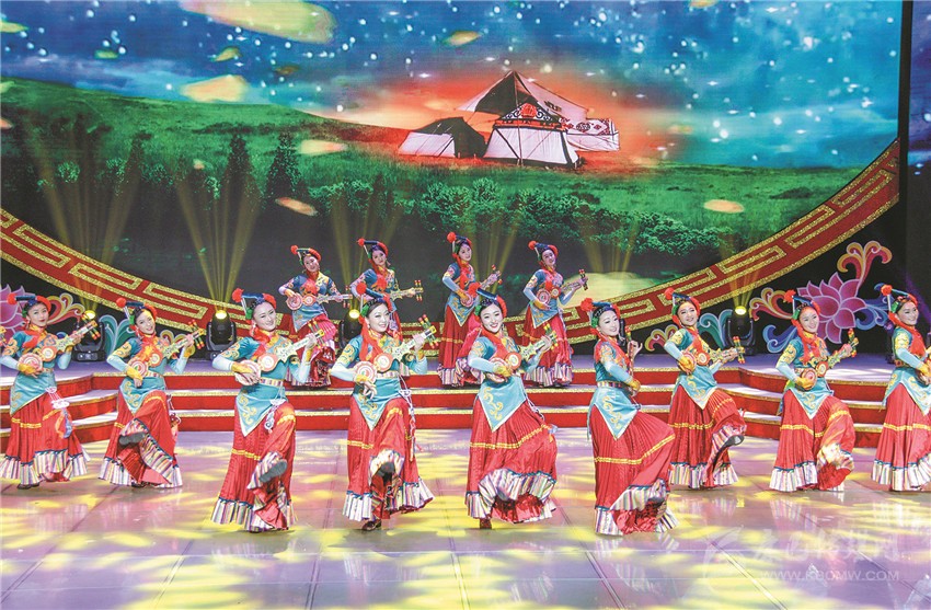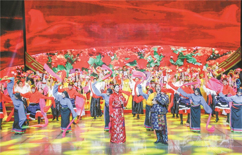 歌曲聯(lián)唱《百花爭艷》,是演出中第一個讓觀眾們大呼過癮的節(jié)目,年僅5歲的澤仁拉姆用一首藏族原生態(tài)歌曲《故鄉(xiāng)》,讓全場觀眾耳目一新。緊隨而來的藏族山歌《家鄉(xiāng)美》、漢族歌曲《和諧大家園》、回族歌曲《花兒與少年》、彝族歌曲《 尼雨尼杰》將音樂的魅力逐級顯現(xiàn),最后在經(jīng)典歌曲《愛我中華》中急速升華。6首歌曲風(fēng)格各異,卻又一氣呵成,不僅集中展示了我州藏、漢、回、彝四個民族的藝術(shù)風(fēng)采,還生動展現(xiàn)了我州各族人民其樂融融、團(tuán)結(jié)進(jìn)步的和諧面貌。
