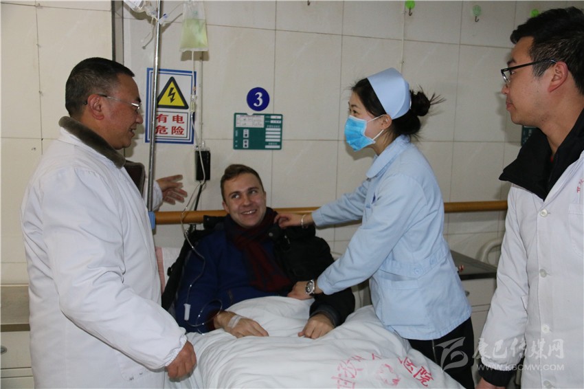 和國(guó)醫(yī)生正在給臨床病人檢查病情。一位來(lái)康定玩的俄羅斯小伙因患重感冒住進(jìn)了急救中心。正在輸液的他用比較熟練的中文激動(dòng)地告訴記者:“這里的醫(yī)生服務(wù)很好,他們過(guò)年都沒(méi)有休息,我得了重感冒,經(jīng)過(guò)治療以及在他們的細(xì)心關(guān)照下,我的病情好多了?!?/span>