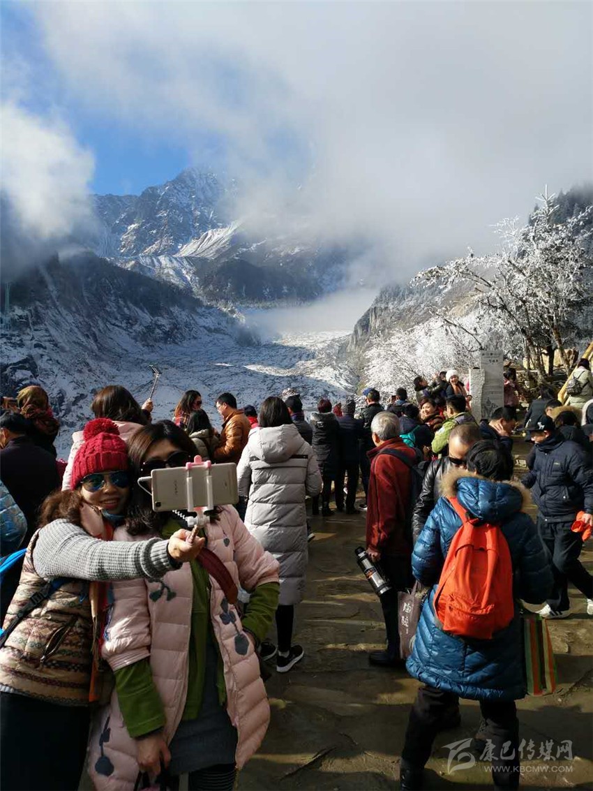 2017 春節(jié)黃金周第三天,各地游客沐浴冬日暖陽紛至沓來,海螺溝景區(qū)迎來了5A創(chuàng)建國檢后的第一個(gè)客流高峰。