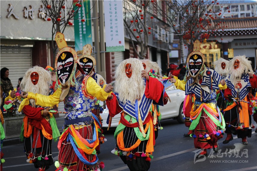 春節(jié)期間康定街頭巡游的藏戲演出隊。