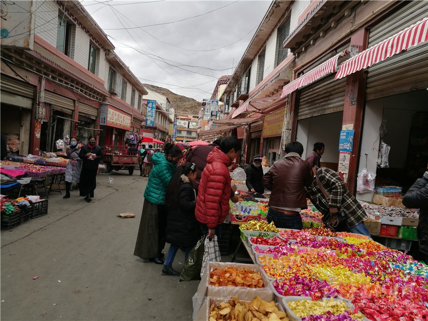 筆者在該縣副食店、超市看到,商家的各種促銷優(yōu)惠活動,吸引了不少農(nóng)牧民群眾,前來購買年貨的群眾熙熙攘攘。各種涼鹵食品店的生意也相當火爆?!翱爝^年了,吃的、用的和穿的都得買點,過完藏歷年,就要忙春耕生產(chǎn)了?!笔掷锪嘀蟀“曦浀慕荡霛M臉喜悅地說。