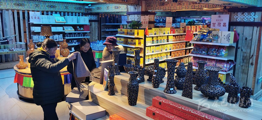 顧客們正在選購甘孜特色農(nóng)副產(chǎn)品。