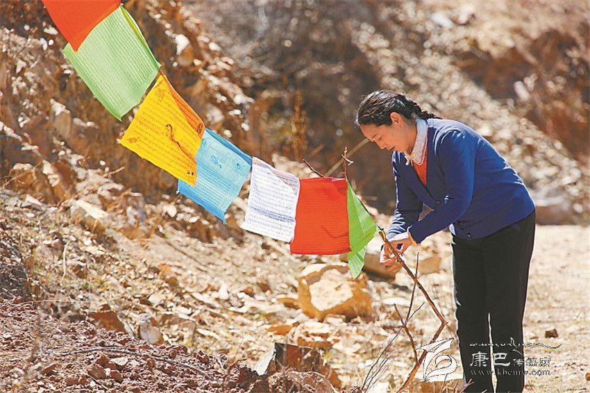 到達(dá)益西村布乃格時(shí),杜勒突然發(fā)現(xiàn)前面有十多米路段已經(jīng)被洪流沖垮了一半。“停車!停車!不能再往前開(kāi)了!”坐在副駕駛座上的杜勒急忙叫住丈夫,從身上斜挎的小包里拿出五六面風(fēng)馬旗,拉開(kāi)車門(mén),幾步?jīng)_到了垮塌路段跟前。“不要再過(guò)去了,水里有石頭,一會(huì)兒被大水沖走了你就完了!”仁孜跟著跳下車,追著她喊??墒嵌爬詹活櫿煞虻暮艉?,蹲在垮塌路面的邊緣,伸出雙手將穿滿風(fēng)馬旗繩子的一端系在路邊山壁的樹(shù)枝上。她身子傾斜,右腳伸直踩在被河水沖成斜坡的路基上,左腳彎曲踏著僅剩的一點(diǎn)路面,想將繩子綁得更加牢固。而風(fēng)馬旗卻不聽(tīng)使喚的在風(fēng)雨交加中搖擺不定,杜勒心中此刻只有一個(gè)信念:風(fēng)馬旗上系著的是萬(wàn)千生命,無(wú)論如何也要綁牢實(shí)。“你是不是瘋了?路基都空了,要是垮下去你被大水沖走了怎么辦?”仁孜話音剛落,杜勒右腳踩著的那塊泥土突然整塊塌了下去。仁孜一把抓住她的手臂,把她拽了上來(lái)。“如果當(dāng)時(shí)是她一個(gè)人,那肯定沒(méi)命了!”仁孜把她拖回車上才發(fā)現(xiàn),杜勒卷起褲管兒的腿上布滿了青青紫紫的淤痕,雙腳顫顫巍巍,幾乎站不穩(wěn)?;氐娇h城后,醫(yī)生告訴杜勒短時(shí)間內(nèi)不能走路,要多休息??墒?,當(dāng)天下午,杜勒趁仁孜上班,自己找了一根竹棍子拄著,又趕到下一個(gè)坍塌路段做著重復(fù)的工作。
