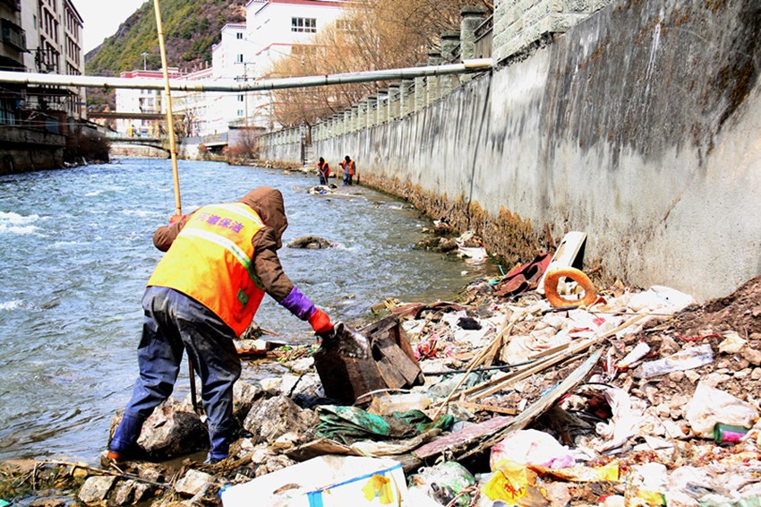 時間倒回至2月8日,一則關(guān)于“康定城區(qū)河道垃圾成堆”的消息在網(wǎng)絡(luò)發(fā)布,引發(fā)輿論嘩然。尚在春節(jié)假期中,相關(guān)部門便組建河道保潔小分隊,出動數(shù)名執(zhí)法人員和8名專業(yè)保潔工人,開始對城區(qū)河道進行全面清理。