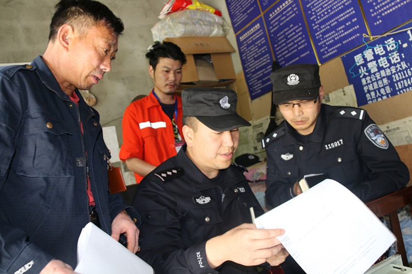 康定市公安民警檢查爆破公司安全措施。本報記者 馬建華 攝