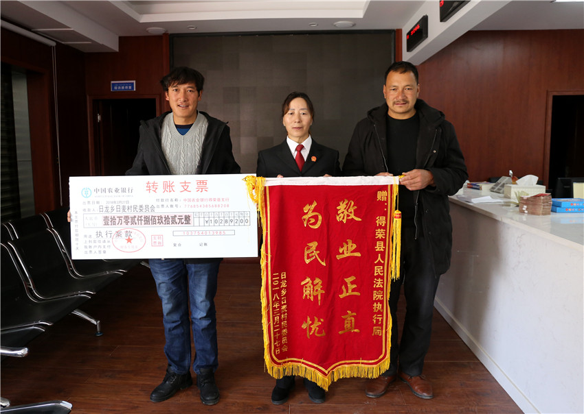 在執(zhí)行款發(fā)放現(xiàn)場,得榮法院執(zhí)行局局長小娜錯法官正逐一核對當事人信息,辦理領(lǐng)款手續(xù),她向筆者介紹說:“去年開始,我們在共擬定出了29個基本解決執(zhí)行難的工作任務(wù),形成了7條具體措施,對所屬的11件執(zhí)行難案每件形成專項行動方案,并將‘一案一辦法’的基本原則落實到了后續(xù)的23件案件執(zhí)行當中,取得了良好的執(zhí)行效果,今后我們將持續(xù)深入執(zhí)行難專項行動,全面深入落實依法治理,切實保護人民群眾的合法權(quán)益,努力讓人民群眾在每一件司法案件中都感受到公平正義,感受到更多的幸福感和安全感?!?/p>